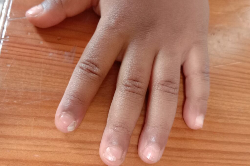With little to almost no help from the GP at my place, I had to request an online consultation with our child paediatrician in Chennai. He accepted and I sent him the photos of her finger nails. In our call, he told me it’s common among kids and there’s nothing to worry about.